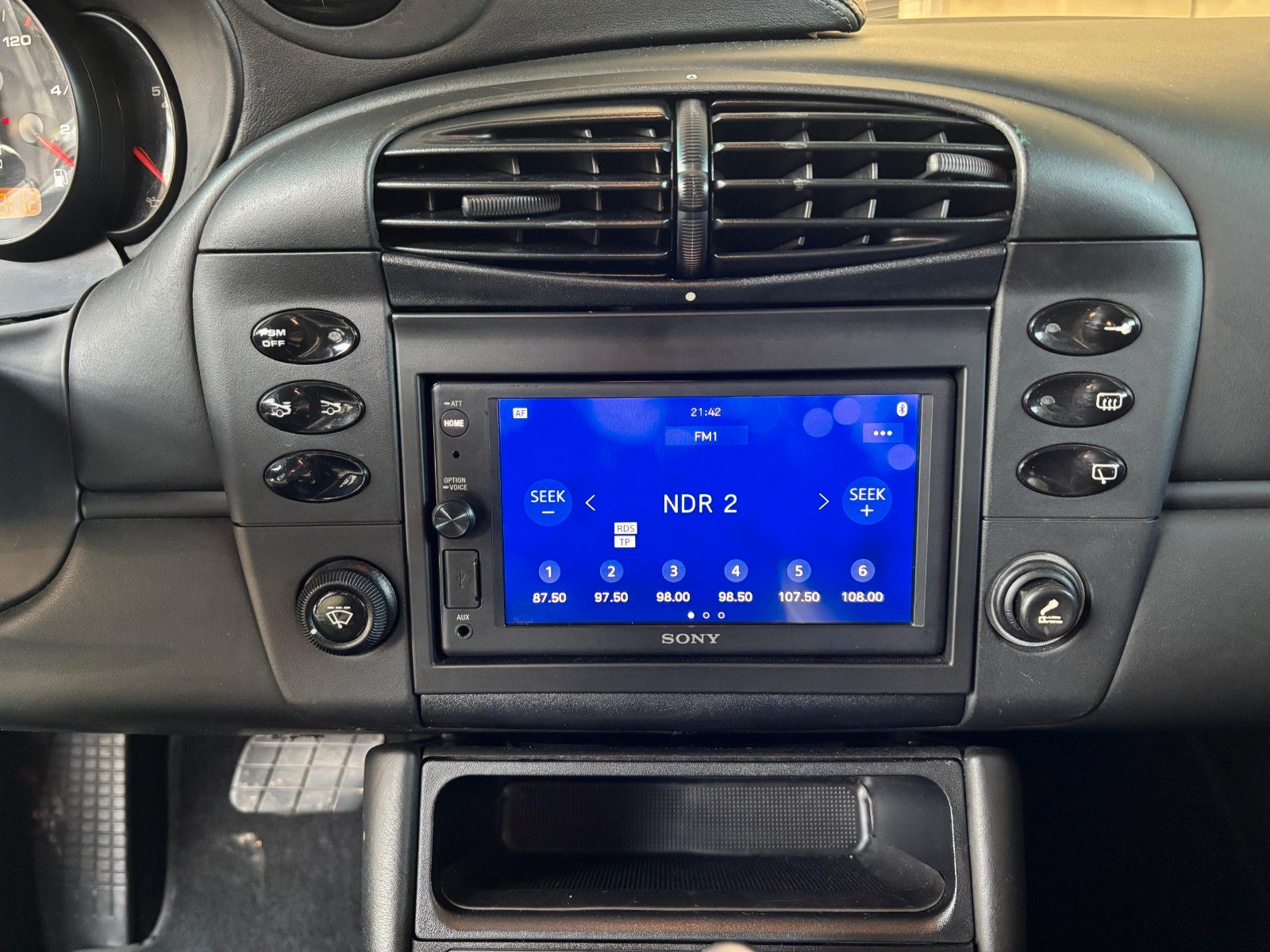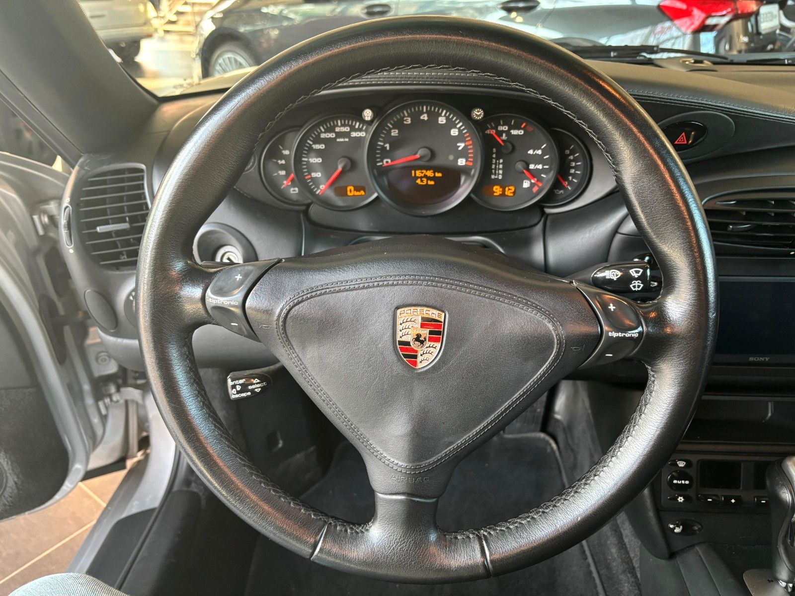 Frontscheibe mit Bandfilter oben, Klang-Paket, LM-Felgen vorn/hinten: 8x18 / 11x18 (Turbo Look II Rad), Schiebedach elektrisch, Sitzheizung vorn links, Sitzheizung vorn rechts